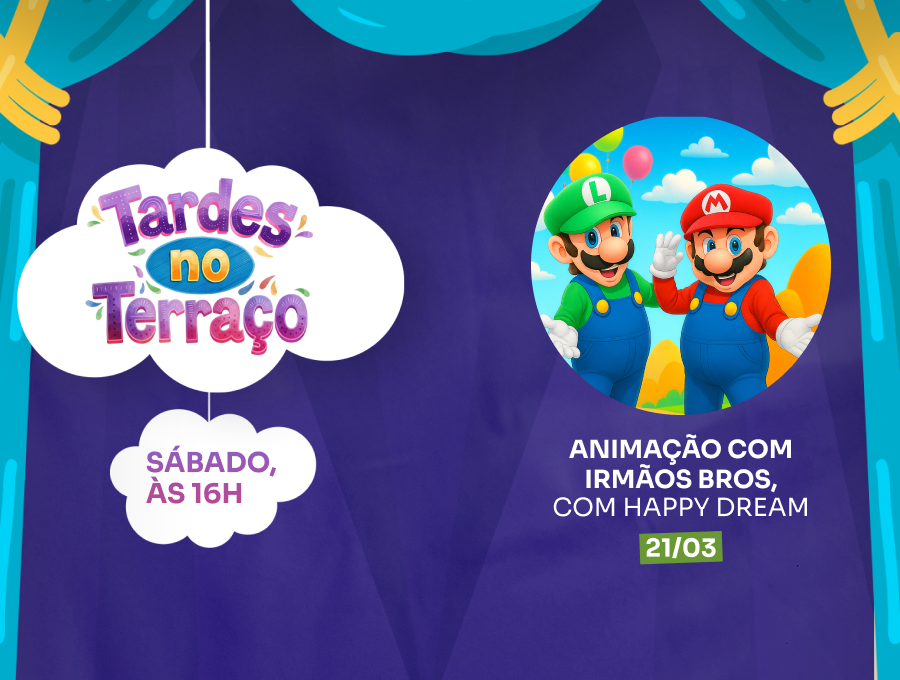 Que tal se divertir com os Irmãos Bros? A Happy Dream convida todos a embarcar nessa tarde de sábado, dia 21/03, às 16h, aqui no Terraço Shopping, com muita brincadeira e diversão.
