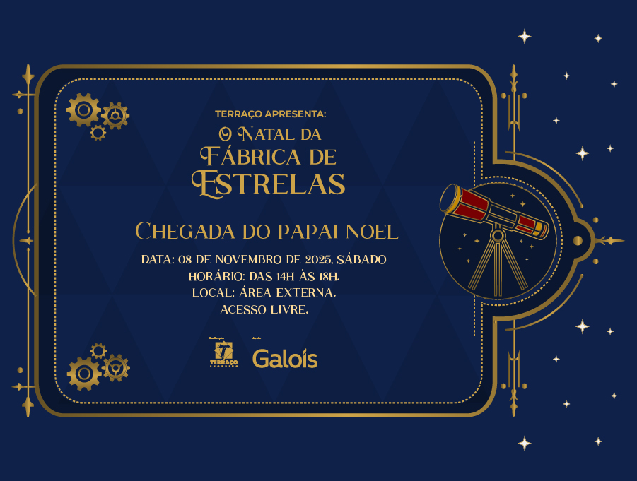 O brilho do Natal chega ao Terraço Shopping com uma proposta encantadora e cheia de magia. Neste ano, o shopping convida o público a viver “O Natal da Fábrica de Estrelas”, uma experiência única que transformará cada cantinho em um universo de sonhos, imaginação e luz.