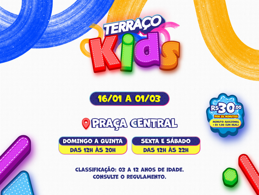 O Terraço Shopping trouxe agora em janeiro uma atração para as crianças viverem uma experiência repleta de energia, movimento e diversão. O Terraço Kids é um brinquedo gigante, projetado para encantar e proporcionar momentos inesquecíveis. A partir do dia 16 de janeiro, a diversão estará garantida na Praça Central do shopping.